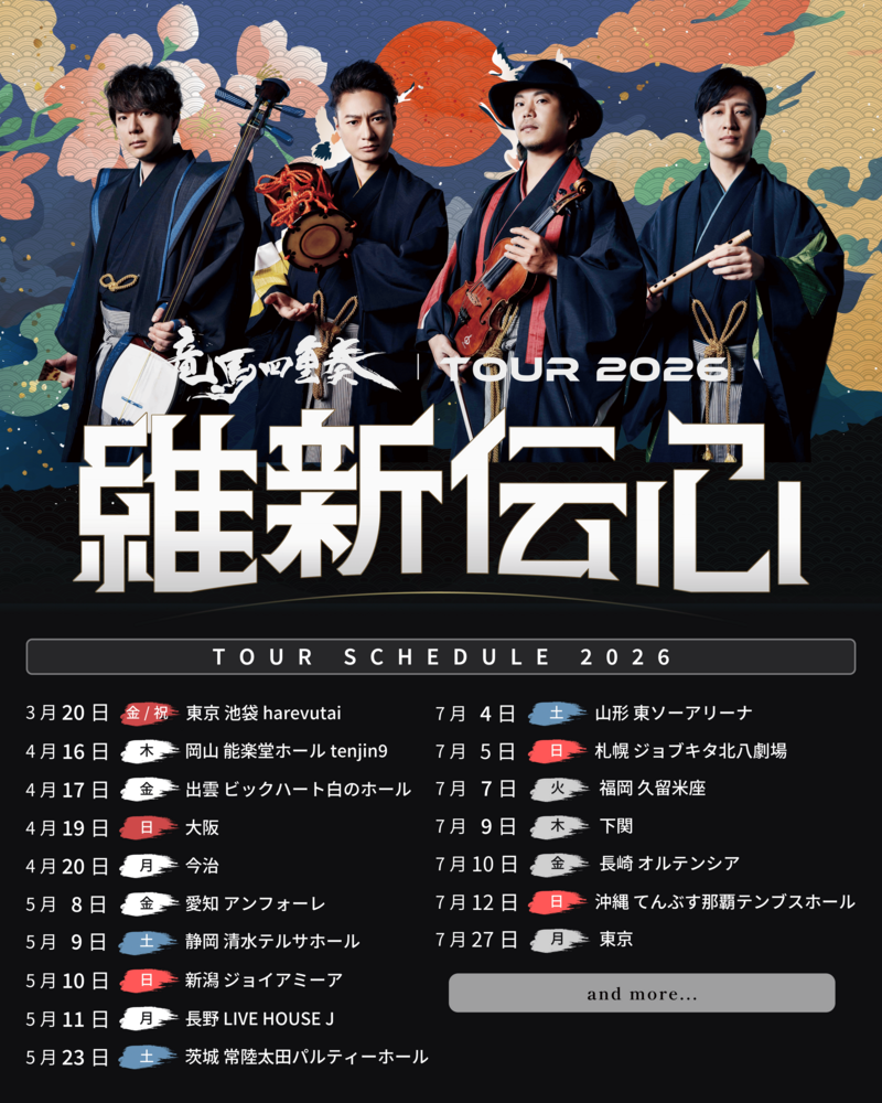 【TOUR情報】2026年3月~7月、竜馬四重奏 10th Anniversary tour「維新伝心」追加情報解禁!